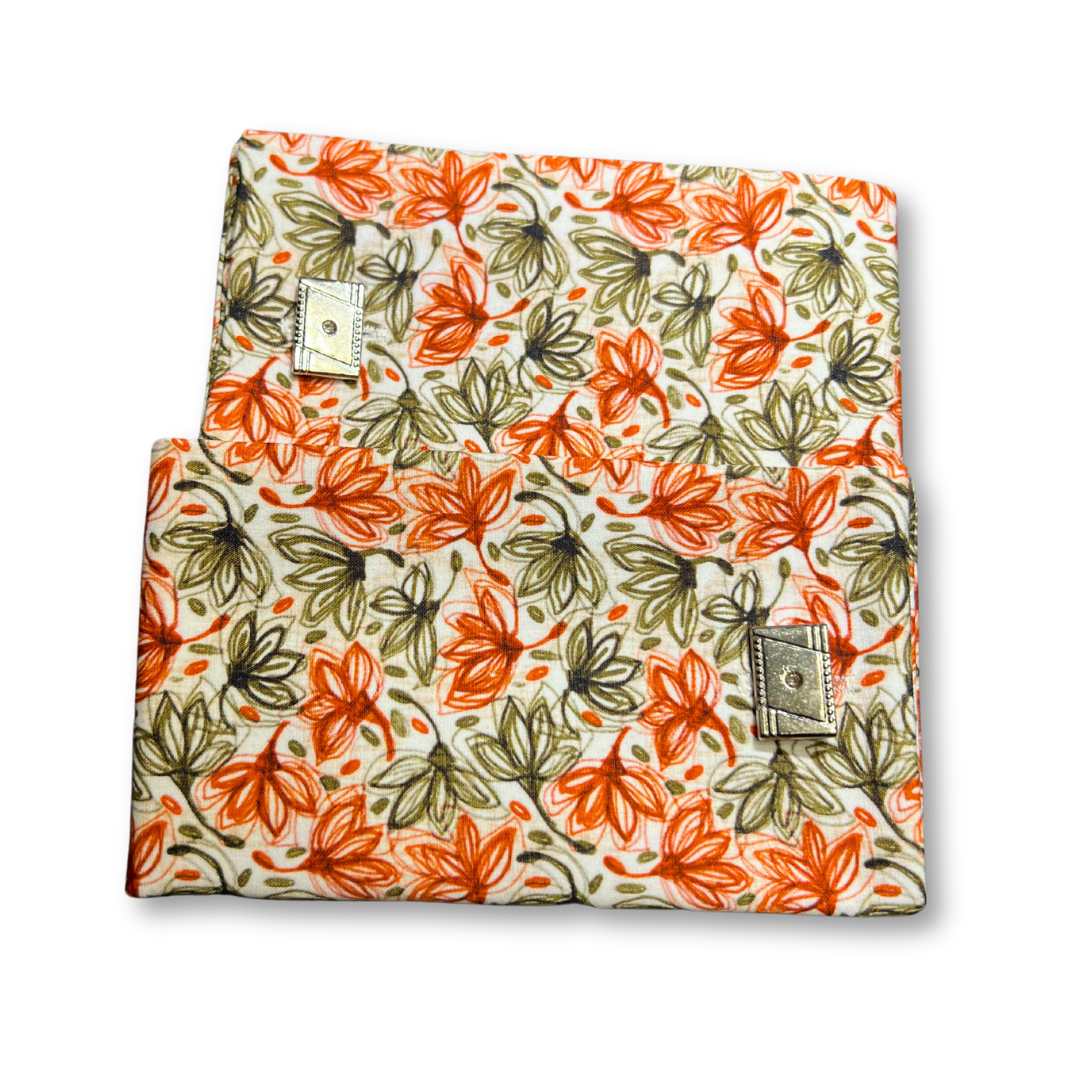 The intricate pattern resplendent in shades of citrusy orange and refreshing green, captures the essence of a sunlit garden in bloom.